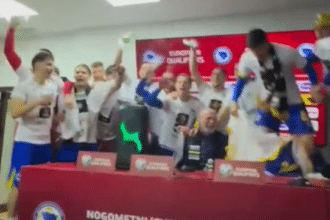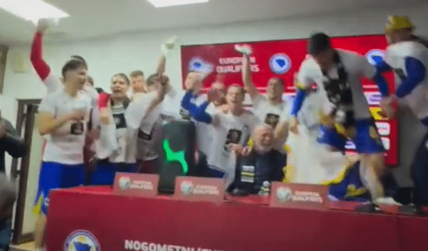 Босанските фудбалери му влетаа со звучник на селекторот Сергеј Барбарез додека држеше прес конференција по…