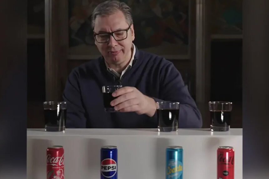 „Откако решија од мене да направат мечка на панаѓур, тука ми ставија четири газирани пијалаци. А сега треба да погодам која е Кока-Кола, која Пепси, која Кокта, а која Зеро“, рече Вучиќ, а потоа додаде: