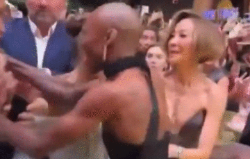 Додека ѕвездата одеше по жолтиот тепих, среде настанот, непознат маж скокна преку бариерата и физички ја нападна.
