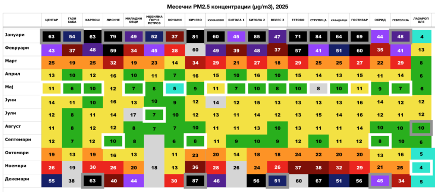 Поразителен е податокот дека ниту Лазарополе, кое се смета за референтно чисто подрачје, не ги исполнува здравствените препораки за PM2.5 во текот на целата година.