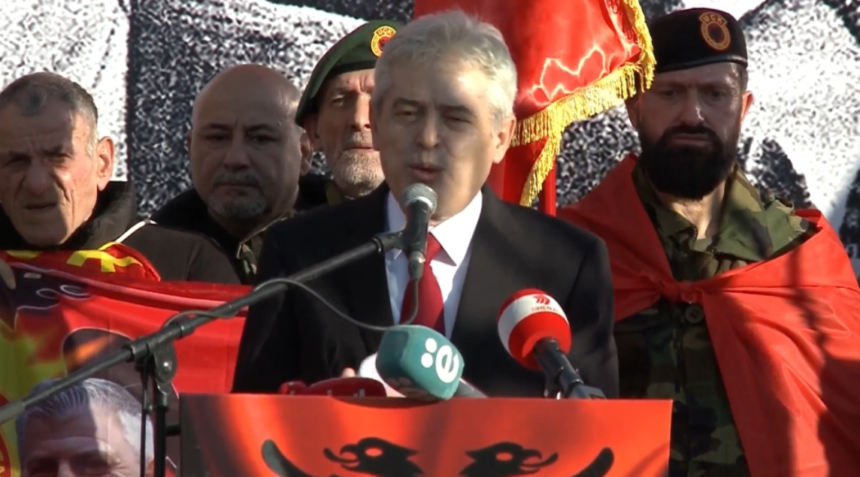 Претседателот на ДУИ, Али Ахмети, на протестот што беше организиран во Скопје во поддршка на поранешните лидери на ОВК, изјави дека процесот во Хаг треба да заврши со ослободителна пресуда, бидејќи, како што рече, „сите оние што се зад решетки се обвинети за дела што не ги сториле“, пренесува ТВ21.
