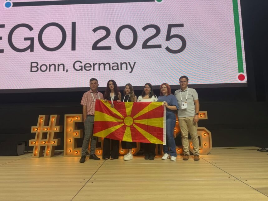 Македонските ученички – информатичарки трета година по ред се оние коишто го најавуваат успешното учество за Македонија на меѓународните олимпијади по информатика. На петтата по ред Европска олимпијада по информатика за девојки (ЕОИД 2025), која од 14-ти до 20-ти јули се одржува во Бон, Германија, нашите ученички остварија уште еден одличен резултат, освојувајќи еден бронзен медал. Бронзениот медал за Македонија на ова значајно меѓународно натпреварување го освои Сара Стефановска од Крива Паланка, а достоен резултат постигна и Антонела Владева од Свети Николе, освојувајќи олимписка пофалница. И останатите две членки на македонскиот тим, Елена Трифуноска од Тетово и Јагода Панова од Струмица, имаа солидно претставување. Вклучувајќи го и овој бронзен медал, македонските ученички на досегашните пет изданија на ЕОИД имаат освоено вкупно 1 сребрен и 7 бронзени медали.