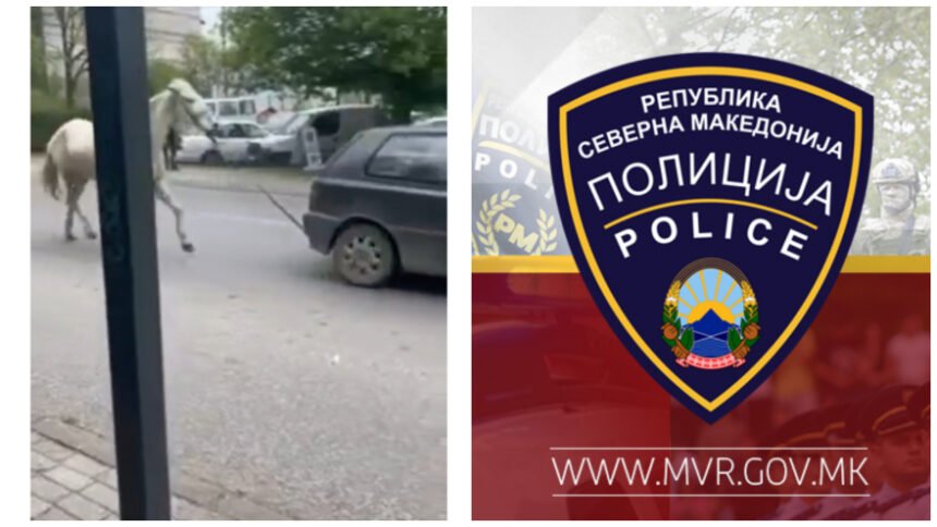Се огласија од полицијата во врска со видеото кое вчера беше споделено на дел од социјалните медиуми на кое се гледа како лице кое управува патничко возило „голф“ со скопски регистарски ознаки има врзано коњ за куката од возилото и така се движи низ градското подрачје.