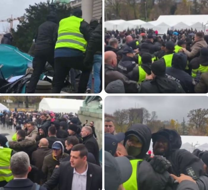Ескалацијата се случи кога пратениците од Народното движење на Србија Ѓорѓе Станковиќ и од Зелено-левичарскиот фронт Богдан Радовановиќ се обидоа да отстранат шатор поставен на самите скали пред парламентот, по што беа нападнати од луѓе од протестниот камп и полицијата.
