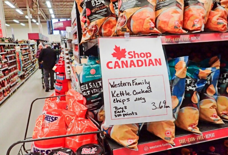 Продавниците ширум земјата почнаа да поставуваат знаци „Произведено во Канада“ и „купи канадски“ за да се истакнат домашните производи, објавија локалните медиуми.