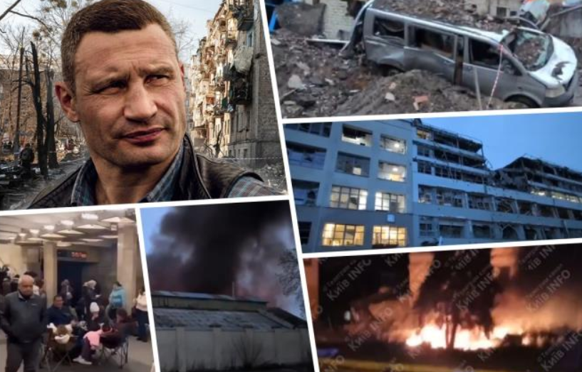 „Пожари избувнаа во областите Дарница, Соломјанка и Оболон. Во Дарница има повредени. Медицинските и итните служби се на терен“, додаде Кличко. Посебно тешка ситуација е забележана во Оболон, каде по ударот избувнал пожар во деловниот центар, а зградата делумно се урнала. Спасувачките екипи се уште се на местото на настанот.