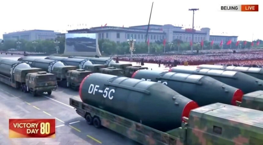 🇨🇳☢️ China showcased its DF-5C intercontinental ballistic missile (ICBM) at the Beijing parade. With a global strike radius, the DF-5C is capable of carrying multiple nuclear warheads and reaching any point on Earth. pic.twitter.com/h2T3K0B453