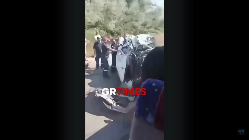 Фотографиите од местото на несреќата, објавени од грчкиот портал protothema.gr, сведочат за разурнувањето на автомобилот, кој е целосно деформиран од силата на ударот.
