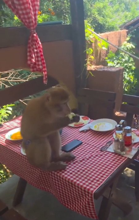 Главниот виновник е мајмун што влегол во ресторанот среде бел ден и ги оставил гостите без ручек.