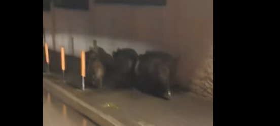 Се појави несекојдневна сцена во скопската населба Водно. На видео кое кружи на социјалните мрежи се гледаат четири диви свињи како шетаат по улиците на населбата, во близина на станбени куќи.