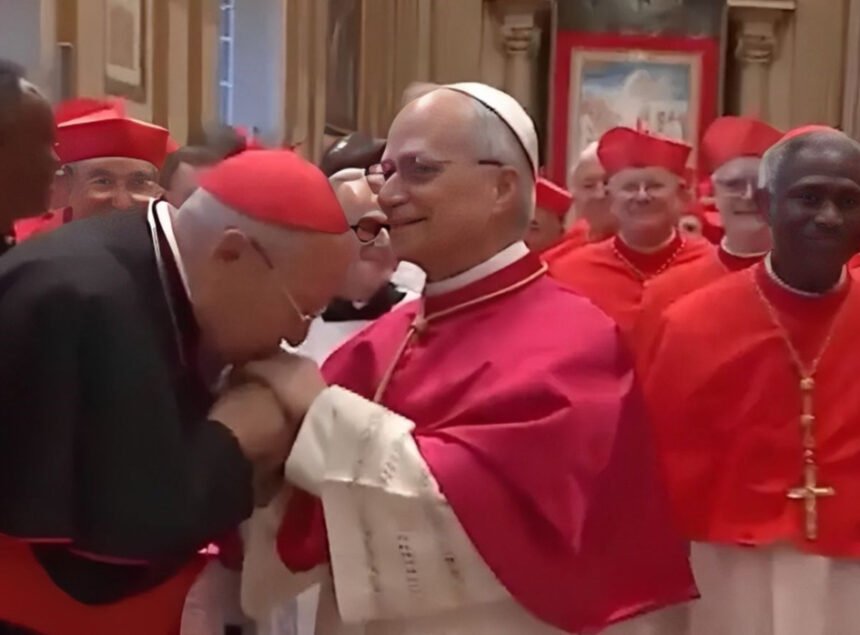 Pope Leo XIV embraces each of the Cardinal electors just after he accepts his election to become the 267th Pope. pic.twitter.com/0cP28r7mam