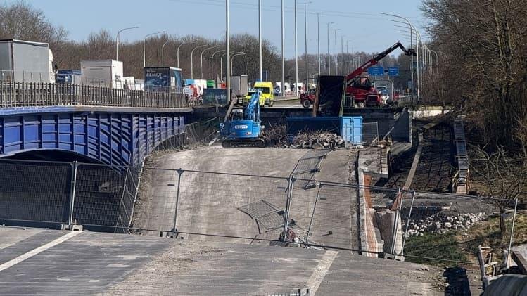 Се појавија застрашувачки снимки од моментот кога се урна дел од мостот. На видеото се гледа како се урива тротоарот на дел од мостот, повлекувајќи два крана зад него, додека сообраќајот продолжува на другиот дел од мостот.