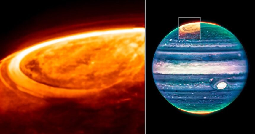 Впечатливите поларни светлини на Јупитер се стотици пати посветли од оние на Земјата, откриваат нови слики од вселенскиот телескоп Џејмс Веб, објави Асошиејтед Прес.