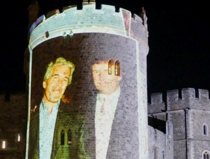 An awkward start to the state visit: the campaign group Led By Donkeys are projecting images of Donald Trump together with Jeffrey Epstein onto Windsor Castle: pic.twitter.com/3tNF1guBWK