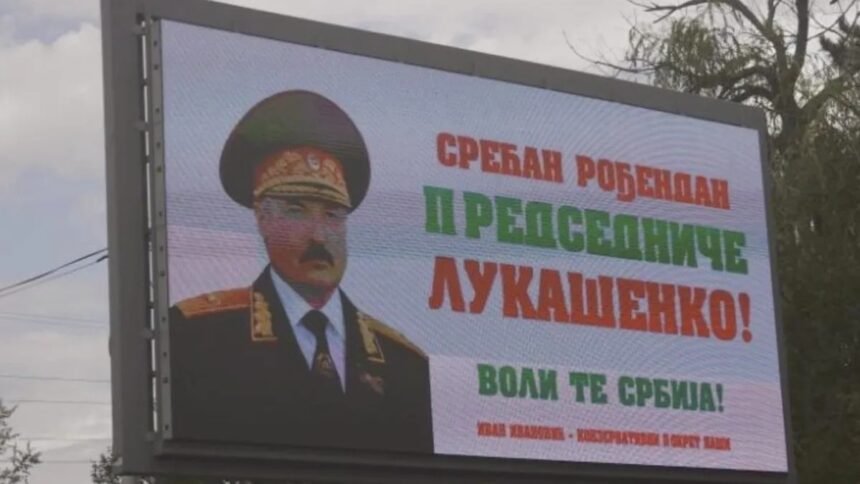 Денес, во главниот град на Србија, Белград, и во вториот по големина град Нови Сад, осамнаа со билборди со честитки за роденденот на белорускиот диктатор Александар Лукашенко.