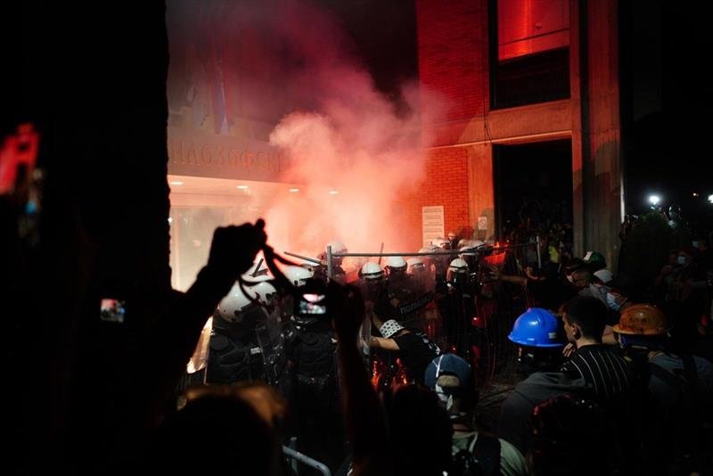 Претседателот на Србија, Александар Вучиќ, доцна синоќа се обрати по интервенцијата на полицијата и жандармеријата на протестот во Нови Сад, и нагласи дека полицијата строго професионално работела, додавајќи дека се уапсени неколку лица, и дека се очекуваат уште апсења.