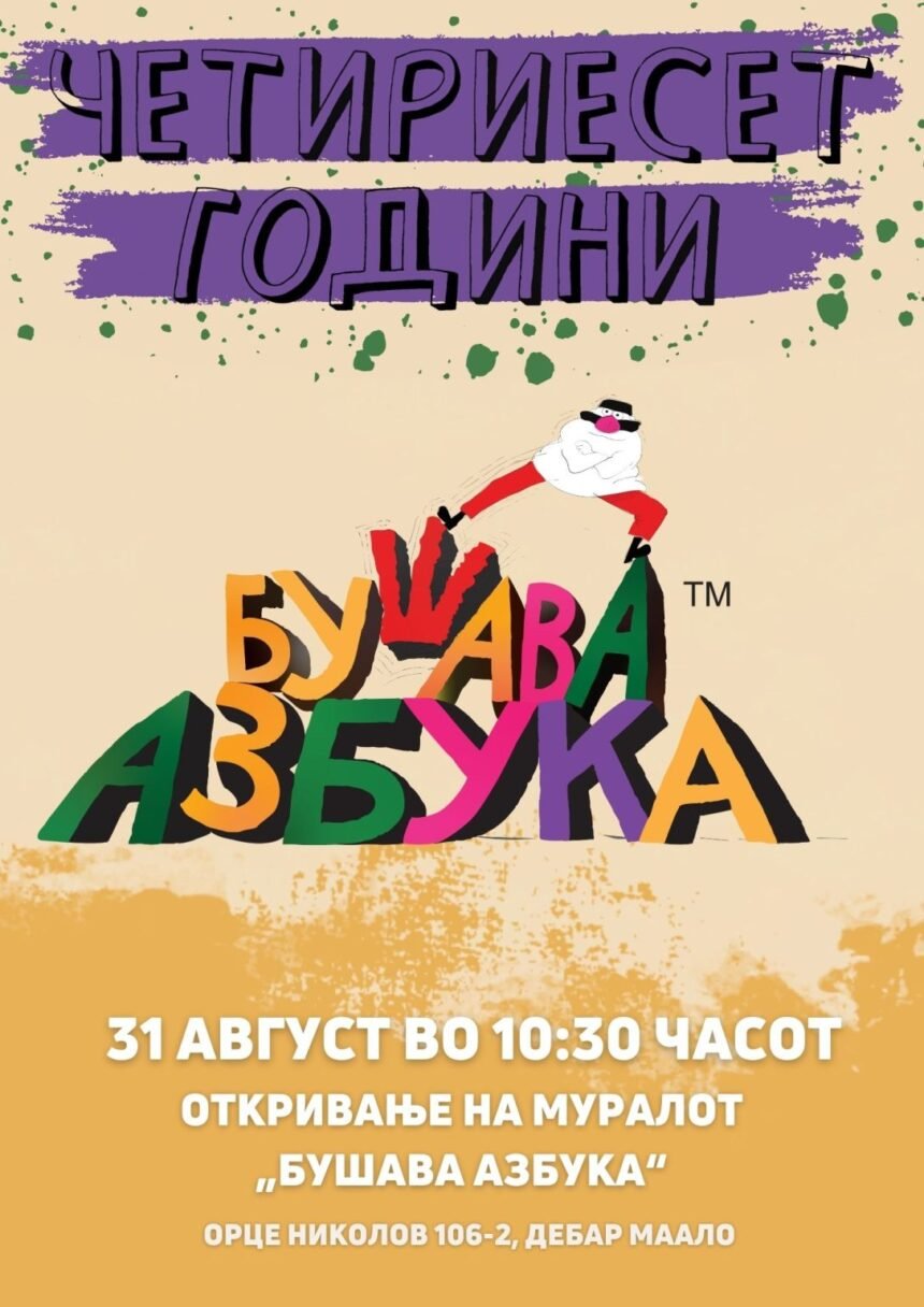 По повод 40 години од првото емитување на легендарната „Бушава азбука“. Со откривање на муралот на 31 август (недела) во 10:30 часот во Дебар Маало, Скопје, ја започнуваме прославата и најавуваме нови содржини. Преку настанот повторно ќе повикаме на потребата од негување, чување и унапредување на мајчиниот јазик преку создавање на квалитетна образовно-забавна програма.