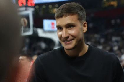 Во најновото издание, актерката позира во танга бикини додека се сонча покрај базенот – без маица, но со еден важен предмет: крема за сончање од нејзината линија за убавина „Тоти“.