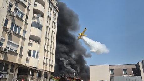 Пожарот претставува опасност за блиската зграда поради што покрај пожарникарите интервенираше и авион Ер Трактор кој исфрли вода врз огнот.