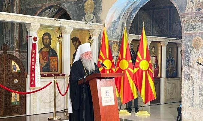 Македонците како народ и како Црква, додаде, треба да се особено благодарни на Светите Килил и Методиј што јазикот говорен во солунско беше јазик на нивната проповед, а тој наш јазик стана и остана богосложбен јазик за бројни народи.