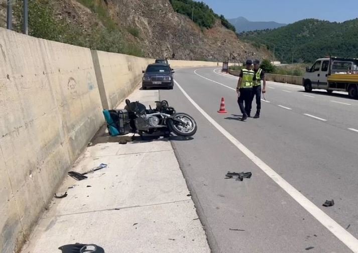 Двајца македонски државјани, кои со мотоцикл се движеле по автопатот „Патот на Арбр“ во Албанија, се здобиле со тешки телесни повреди откако со мотоциклот удриле во заштитен ѕид на коловозот.