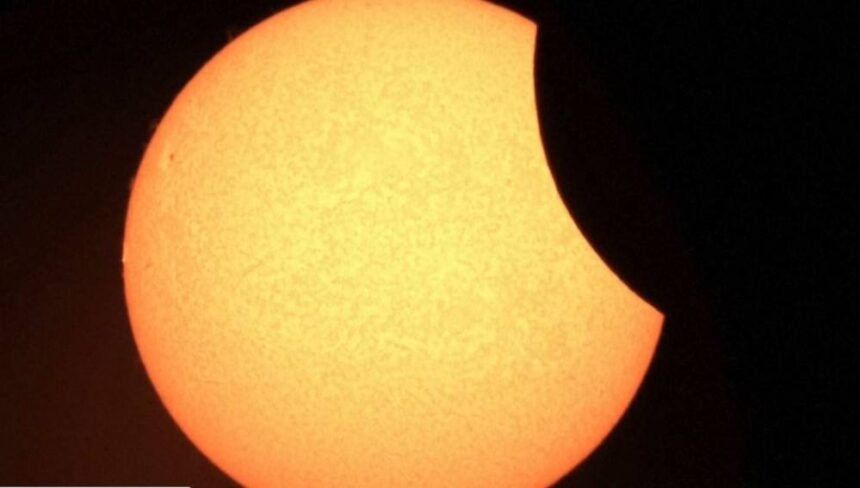Месечината фрла сенка на Земјата и само делумно ги блокира сончевите зраци, правејќи го да изгледа како полумесечина.