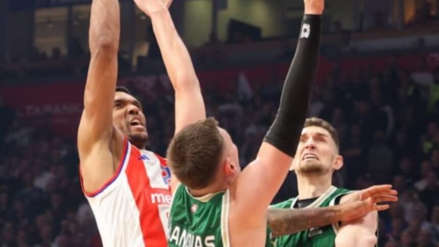Српскиот кошаркарски клуб Црвена ѕвезда е казнет со 10 илјади евра поради проруската акција на навивачите на тимот на мечот со литвански Жалгирис во Евролигата.