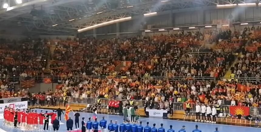 Навивачите на мечот со Словенија во средата во еден глас ја испеаја „Денес над Македонија се раѓа“. Македонската химна грмеше на трибините во салата „Борис Трајковски“ засилена од придружбата на навивачите.