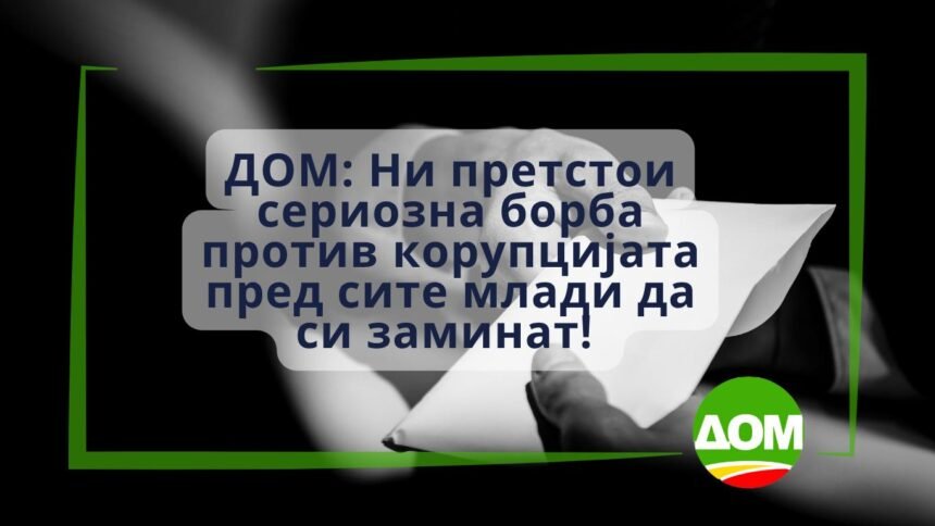 ДОМ останува цврсто на ставот дека корупцијата не смее да се релативизира, ниту да се премолчува. Ги повикуваме сите граѓани и граѓанки, здруженија и политички партии кои веруваат во правдата и еднаквоста пред законите, да застанеме заедно, едни до други, во одбраната на правната држава и владеењето на правото. Пред да го загубиме последниот остаток на институционален кредибилитет. Пред иднината на младите засекогаш да ја побараат на некоја нова, надвор од државата, адреса.