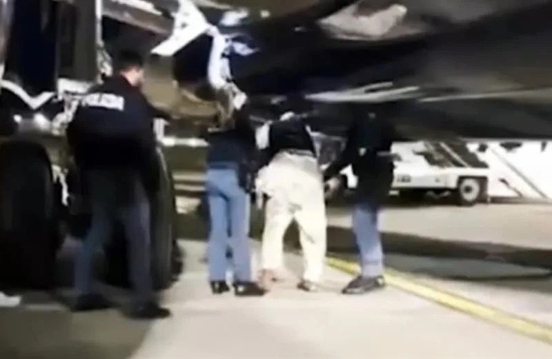 Необичниот инцидент е снимен на меѓународниот аеродром Орио ал Серио Бергамо во понеделникот, 21 април, откако персоналот пронашол непознат маж како се крие меѓу тркалата на авион.