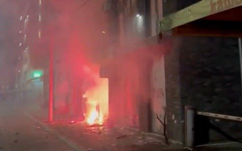 Пред седиштето на Српската напредна партија (СНС) во Ваљево демонстранти со качулки и покриени лица фрлаа пиротехнички средства, по што избувна пожар во дел од просториите. Огнот беше изгаснат со интервенција на противпожарните екипи и демонстранти. Искршен е влезот на Општина Ваљево, а полицијата употреби солзавец.