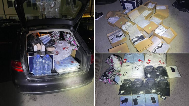 На 01.08.2025 околу 20:00 часот на наплатна рампа Романовце, на автопатот Скопје-Куманово од страна на полициски службеници од Мобилната единица за компезаторни мерки при ОГРМ, бил лишен од слобода Д.Ц. (30) од Крива Паланка, затоа што при преглед на возилото „ауди“, кое тој го управувал, пронајдена е поголема количина на брендирана стока, без соодветна документација. По документирање на случајот, против Д.Ц. ќе биде поднесена кривична пријава по чл 285 ст.1 од КЗ“, стои во известувањето од МВР.