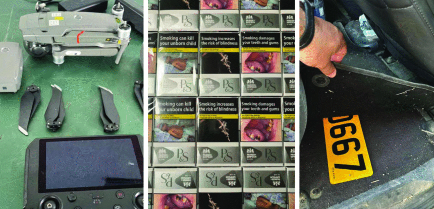 Во текот на минатата недела, царинските службеници открија неколку обиди за криумчарење разна стока, при што привремено се задржани цигари, фалсификувана стока, дрон, регистарска табличка и документи за камп-приколка.