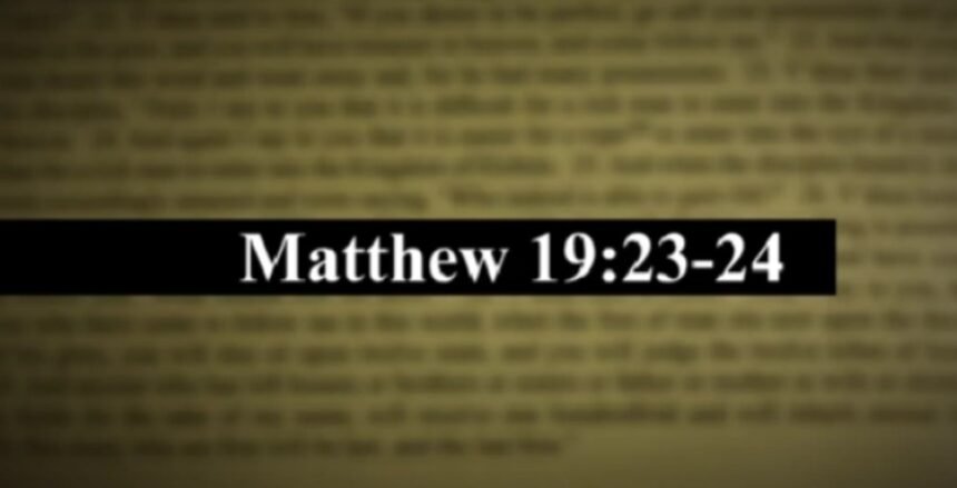 Матеј 19:23 и 24 содржат моќна илустрација од Исус до неговите следбеници. Да ги погледнеме верзиите на Кралот Џејмс и Новите меѓународни верзии на овој стих и да видиме како тие се споредуваат со преводот што се наоѓа во Новиот завет на арамејски јазик.