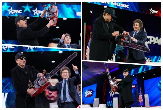 Милијардерот задолжен да ги намали трошоците на американската федерална влада, Илон Маск, се појави на сцена на конзервативната конференција која се одржа надвор од Вашингтон со моторна пила – подарок од аргентинскиот претседател Хавиер Милаи, објави Ројтерс.