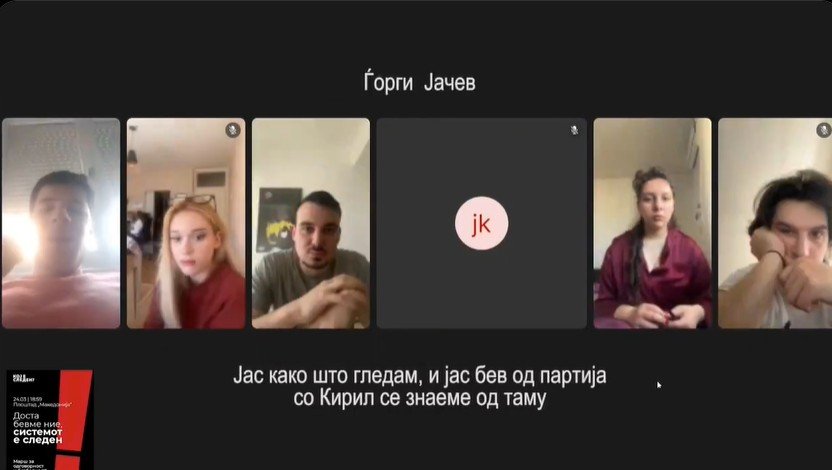 На социјалните мрежи се појави видео од групен разговор меѓу македонски и српски студенти кои се договараат како да предизвикаат немири на протестите во Скопје кои се закажани за утре. Он лајн состанокот го координара извесна Стача, атудентски инструктор а во „чатот“ учестуваат Кирил Митановски од Црвената младина на Левица кој вели дека е од партија.