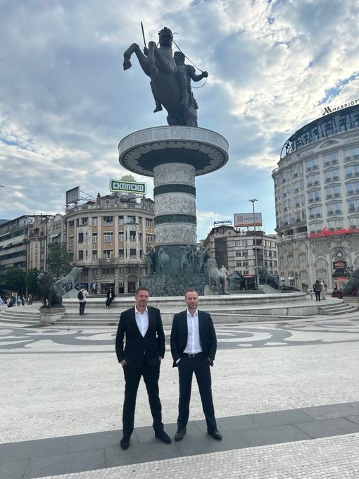 Крис Велики, напиша Ардоино, објавувајќи фотографија со Павловски на скопскиот плоштад, а во позадина е споменикот „Воинот на коњ“.