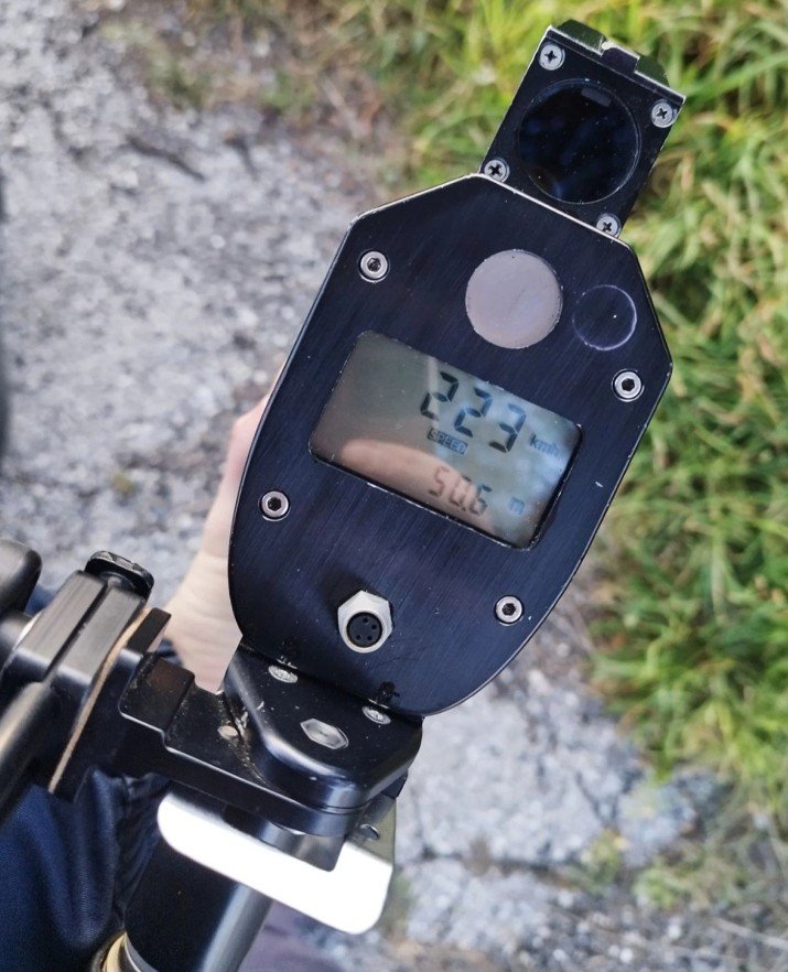 Од Генералната регионална полициска дирекција на грчката област централна Македонија на социјалните мрежи објавија фотографии како од радарот што ја регистрирал брзината, така и од мотоциклот на уапсениот.