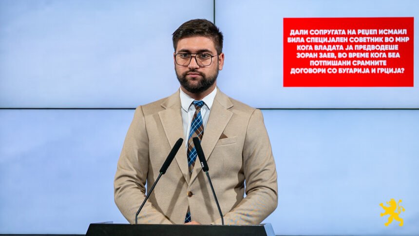 Дали сопругата на Реџеп Исмаил била специјален советник во МНР кога Владата ја предводеше Зоран Заев, во време кога беа потпишани срамните договори со Бугарија и Грција?, праша на денешната прес-конференција Валентин Манасиевски од ВМРО-ДПМНЕ.