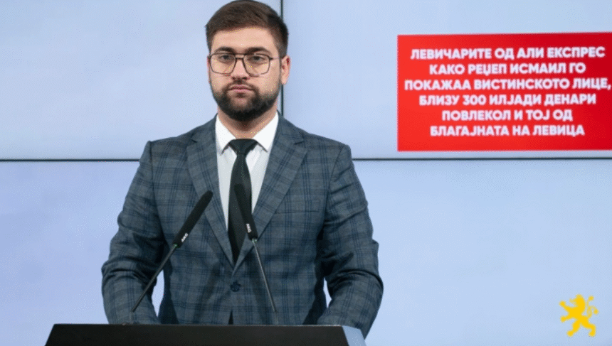 Левичарите од Али Експрес како Реџеп Исмаил го покажаа вистинското лице, близу 300 илјади денари повлекол и тој од благајната на Левица.По Апасиев, Крмов, Мојсоска, Мециновиќ, и Реџеп Исмаил брцнал во медот на Левица, инкасирајќи близу 300 илјади денари, вели Валентин Манасиевски од ВМРО-ДПМНЕ.
