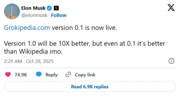 Илон Маск и неговата компанија xАИ ја лансираа Грокипедија, најавувајќи ја на почетокот на октомври како конкурент на онлајн енциклопедијата Википедија, која е креирана и уредувана од волонтери, а која некои американски републиканци ја обвинуваат за политичка пристрасност и, заедно со Маск, тврдат дека е „премногу левичарска“.