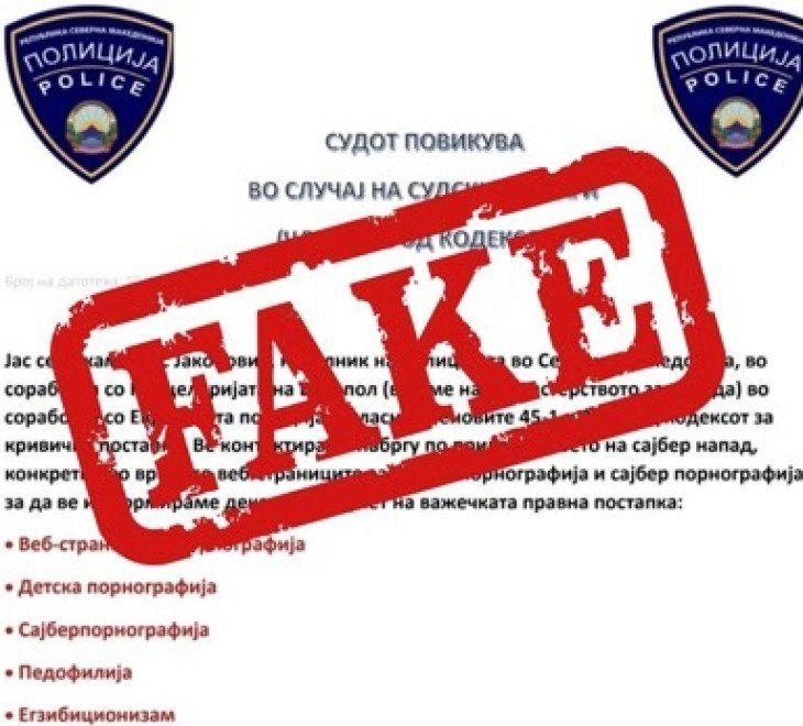 До неколку граѓани и правни лица, од страна на сторители кои лажно се претставуваат во име на МВР и ЕВРОПОЛ, се упатени лажни покани во врска со наводна тековна истрага, информираат попладнево од Министерството за внатрешни работи, упатувајќи апел до граѓаните да бидат внимателни и да не отвораат сомнителни пораки.