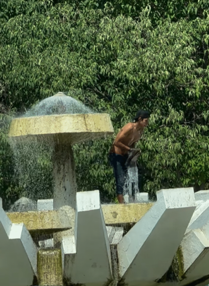 Инстаграм профилот „Патриотско друштво“ сподели видео на кое се гледа како момче се разладува или се капе во фонтаната кај Градскиот парк во Скопје.