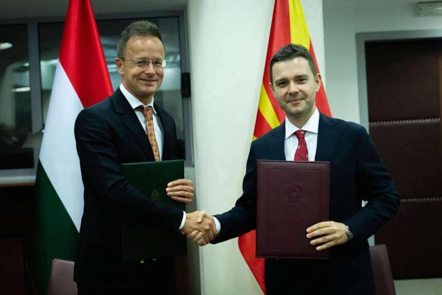 Договор за стратешка соработка меѓу двете влади и Меморандум за разбирање и имлементација на програмата „Стипендиум хунгарикум“ за периодот 2026 – 2028 година потпишале денеска македонскиот министерот за надворешни работи и надворешна трговија Тимчо Муцунски и неговиот унгарски колега Петер Сијарто, кој престојува во посета на земјава.