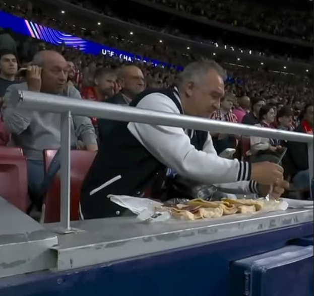 Oвој навивач на Атлетико Мадрид е вистински хит. Тој на стадионот безгрижно си правеше сендвич додека неговиот тим се обидуваше да дојде до победата против Арсенал.