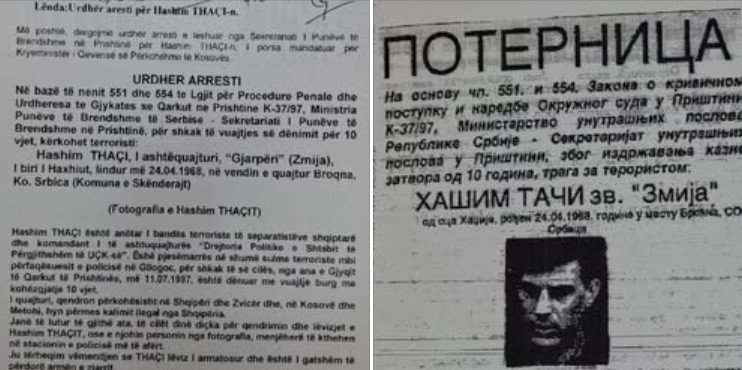 Во наредбата се наведува дека Тачи е вооружен и „подготвен да употреби огнено оружје“ во случај на апсење, претставувајќи го како личност со висок ризик за српските безбедносни сили.