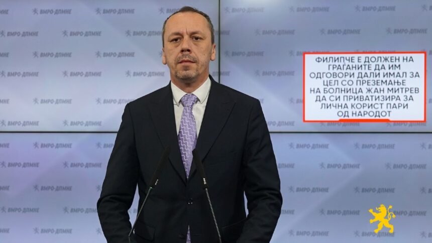 Филипче е должен на граѓаните да им одговори дали навистина имал за цел со преземање на Клиничката болница Жан Митрев да си приватизира за лична корист, пари од народот.
