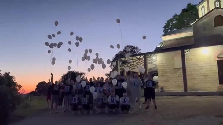 Повредените во пожарот во клубот „Пулс“ кои се наоѓаат на рехабилитација во одморалиштето на МВР на Пониква, во знак на почит кон загинатите во трагедијата пуштија 62 бели балони.