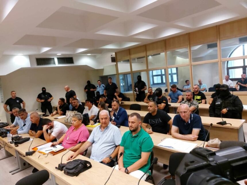 Специјалци со фантомки и вооружени до заби ги чуваа членовите на озогласената криминалната група „Беланоца-Барон“ кои седнаа на обвинителна клупа на првото судење во Кривичниот суд во Скопје. Сите се претежно млади луѓе, дел од нив со луксузни часовници, делуваа како да се бизнисмени, а не обвинети за серија убиста за превласт на скопското подземје. Меѓу нив беше и лидерот на групата Фатљум Ајети Тоте, потоа Акиф Равманоски кого претседателката Гордана Сиљановска Давкова го помилува, што предизвика огромни реакции во јавноста и Гани Туша осомничен за убиството на Орхан Бајрами викан Оки во Ханиоти во Грција. Обвинението е против девет лица, а други седум се во бегство и за нив е прекината истрагата. Поради неприсуство на неколку од адвокатите судењето се одложи, а следното се закажа во август во специјализираната судница во затворот Идризово поради безбедносни причини.