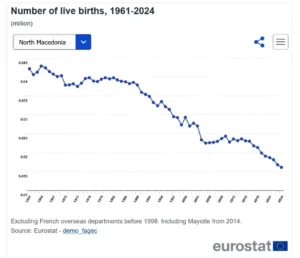 Во Европската унија во 2024 година се родени 3,55 милиони бебиња, што е намалување од 3,3% во споредба со 2023 година, додека вкупната стапка на фертилитет за 2024 година изнесува 1,34 живородени деца по жена во ЕУ, што е намалување во споредба со 1,38 во 2023 година. Во Македонија стапката на фертилитет во последните десет години, исто така, се намалува и се движи од 1,52 во 2004 и 2014, на 1,49 во 2023 и 1,44 живородени деца по жена во 2024 година.